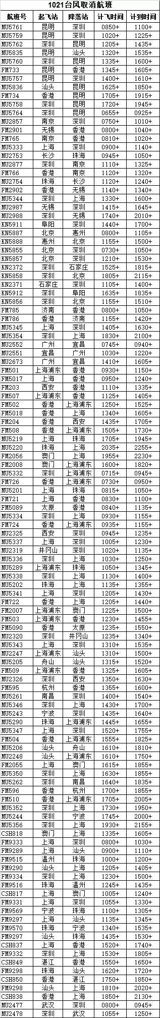 受臺(tái)風(fēng)“海馬”影響,10月21日香港、深圳、珠海、澳門、廣州、汕頭等多地共115班航班取消